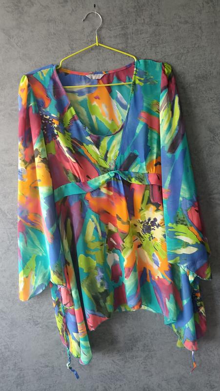 Пропоную яскраву шифонову блузку -туніку Рукав широкий Стан ідеальний.Без дефектів Розмір вказаний 12 Довжина 70 см,по боках -довше Плечі 39 см Напівширина 51 см Рукав 53 см,по боках 62 см Тканина по типу шифон. 100% поліестр ❗❗ ПЕРЕД ПОКУПКОЮ, БУДЬ ЛАСКА ОЗНАЙОМТЕСЯ З ІНФОРМАЦІЄЮ ПРО МЕНЕ ❗❗