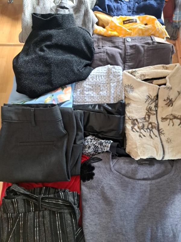 Набор вещей примерно (платье, юбка, брюки, блузы и т.д.) одного размера.