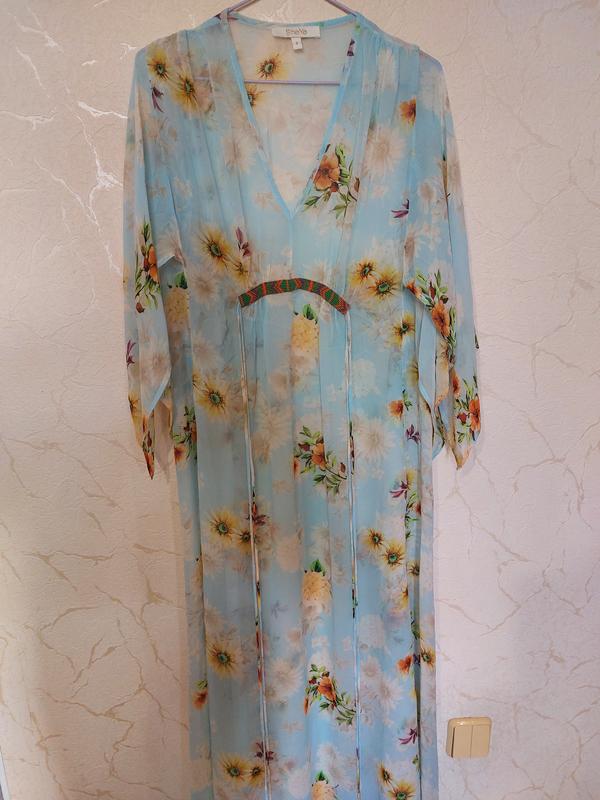 Дуже гарна туніка, одягала 1 раз на фотосесію вагітною. Розмір підійде і на с, і на л. Два розрізи на ніжках і цікаві рукави. ПОГ-55 см(тягнеться),довжина-127 см.