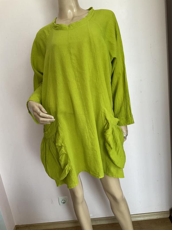 Ткань средняя, на ощупь вискоза. Большие карманы. Етикетки не мае. Проверяем замеры в груди 63 см в бедрах 73 см длина 91 см рукав реглан 65 см по окружности руки 30 см 7:8:25