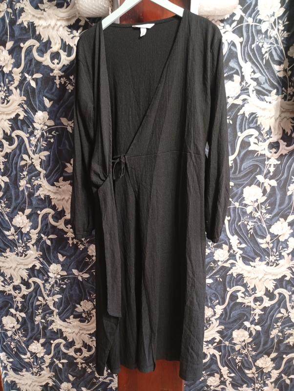 Жіноча легка сукня із заходом чорного кольору, розмір М, довжина виробу 119 см довжина рукава 60 см арт50
