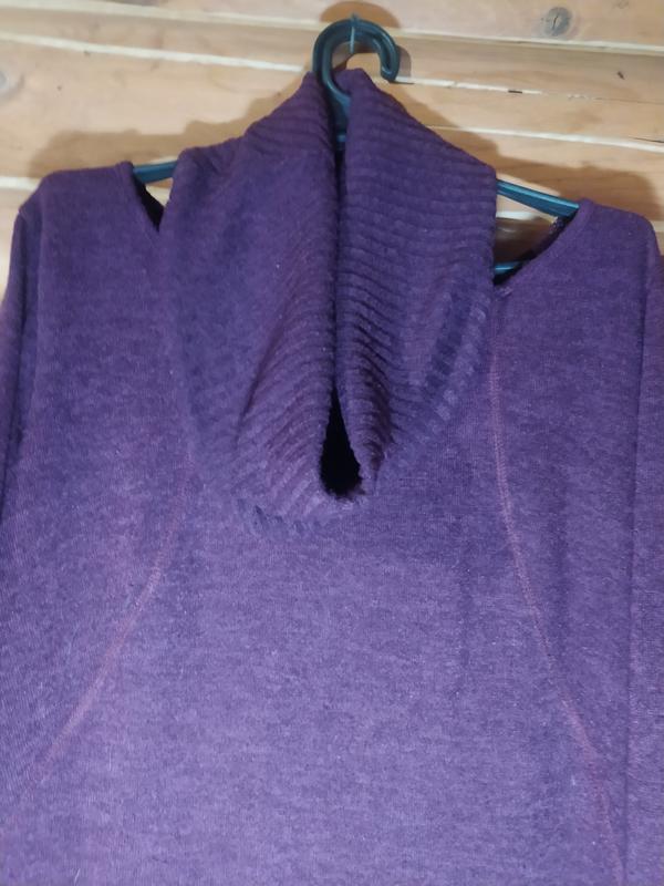 на грудь 115-120е бедра до 120, приятное на ощупь, теплый цвет баклажан 🍆хомут снимается и делается декольте.