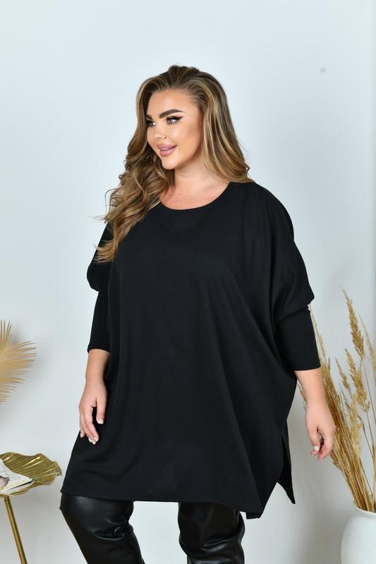 Туніка НОВИНКА💖💖💖 Код 3670 Тканина: двонитка. Колір: марсала, хакі, чорний, фіолетовий, яскраво-синій. Розміри: 52-58, 60-66. Довжина тунікі: 81, 82 см. Довжина рукава от горл.: 71, 74 см. Обхват рукава: 50, 55 см. Заміри готового виробу: 52-58 ОГ 184 ОТ 182 ОС 176 60-66 ОГ 210 ОТ 204 ОС 200 На моделі показано цей розмір 52-58❗️ Зріст моделі 170 см. Oб’єми моделі ОГ 108 ОТ 85 ОС 115 см. Неймовірно гарна туніка в стилі оверсайз із трикотажу двонитки ( розтяжність середня). Обʼємна туніка з круглим вирізом горловини. Низ оброблено боковими розрізами. Рукав оригінальної форми, від ліктя завужується. Кишень, застібок немає.