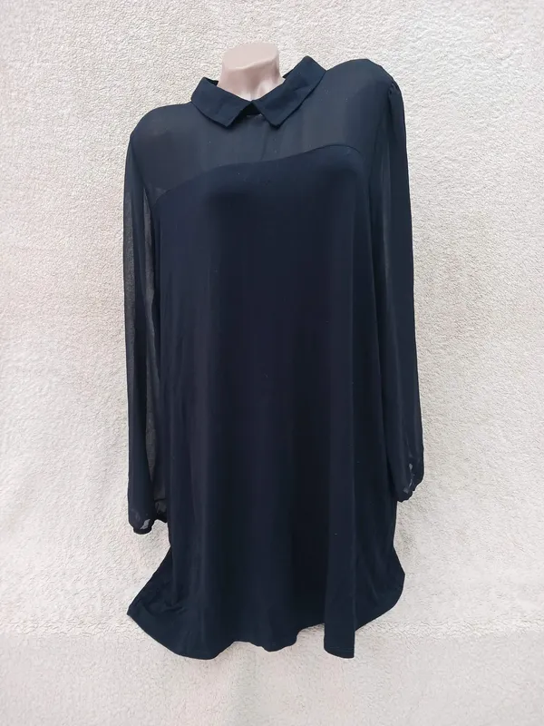 Интересная черная трикотажная туника,верх и рукава прозрачные,рукава широкие модные на резиночке,смотрится нарядно,состояние идеал ПО груди 63-71, ПО бедра 66-74, рукав 64, длина 90 Замeры вeздe половина