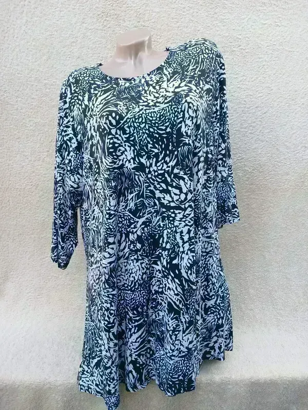 М'яка трикотажна туніка, фасон трапеція,віскоза трикотаж, наявність дуже гарна НО грудей 60-67, НО стегна 74-80, довжина 88 Заміри відмінностей половина