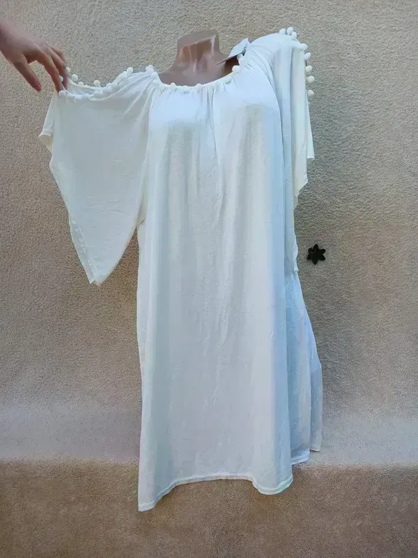 Тоненькая туника,цвет молочный,вискоза трикотаж,ФРАНЦИЯ,состояние новая с биркой ПО груди 66-75, ПО бедра 69-78, длина 93 Замeры вeздe половина