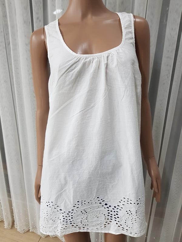 Біленька котонова туніка, універсальна річ,підійде до джинсів , шортів , може бути як пляжною тунікою. пог 51см піт 54см довжина 80см