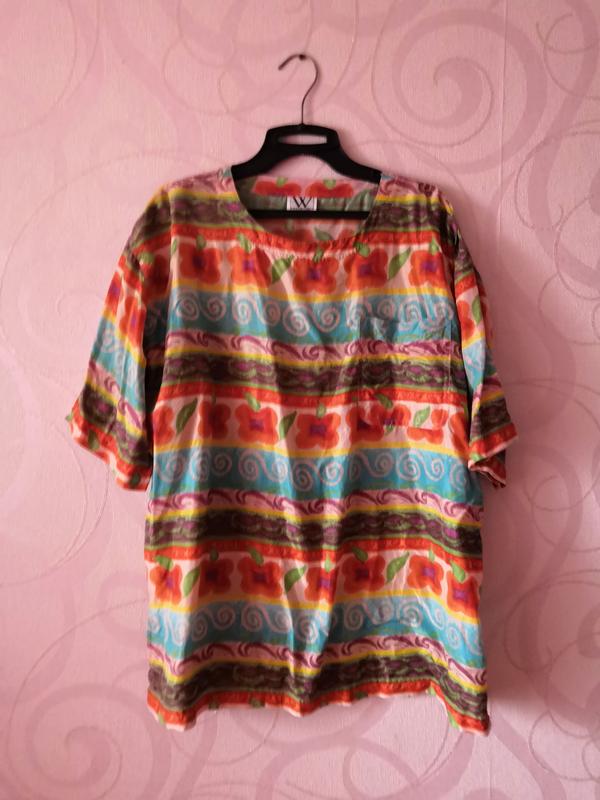 СТРАНИЦА НА ПАУЗЕ продажи приостановлены но напишите мне, если что-то вас интересует сообщу о восстановлении продаж ====================================== ЗАМЕРЫ размер указан M-L, в целом вещь безразмерная брала на свой М как оверсайз, но выходит не очень подойдет на размеры от L до XL-XXL где-то длина изделия = 73-74 см пог = 65 см длина рукава по внутреннему шву = 18 см ширина по плечам = 55 см застежек нет по бокам не большие разрезики впереди карман вещь висела в шкафу, возможно, нужно отпарить/отутюжить но я бы не стала дефектов нет, фото на себе нет ====================================== С ЧЕМ НАДЕВАТЬ мой вариант - короткие шорты: https://shafa.ua/women/shorty/korotkie/19165248-shorty-s-cvetami и босоножки на веревочной подошве. можно просто поверх купальника :)