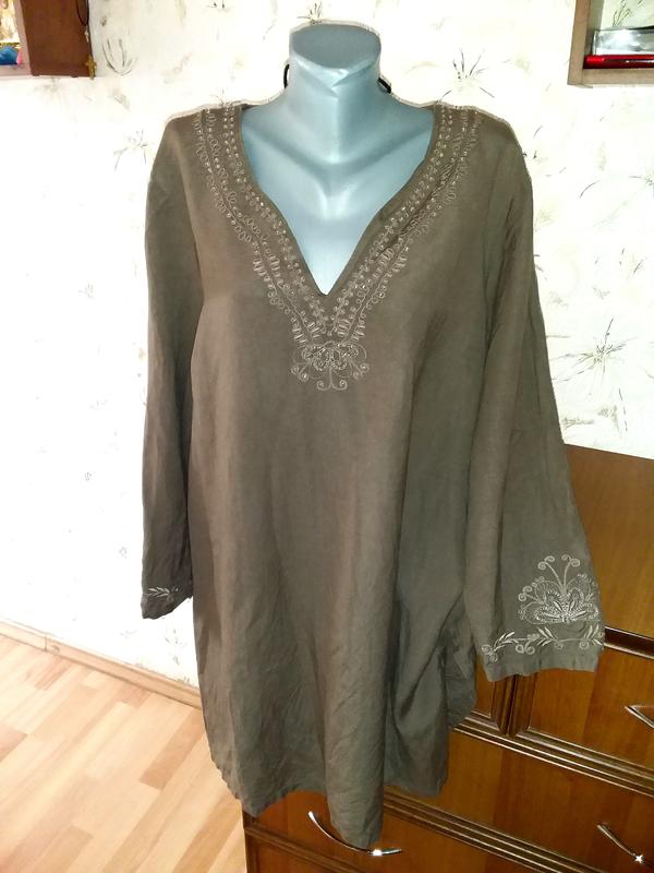 Туніка з вишивкою по горловині і на рукавах. стан дуже хороший, без дефектів. колір ближче до реального на фото 5. довжина від плеча до низу 91. довжина рукава від плеча 55. п/про грудей 66. п/о талії 64. п/про стегон 68. ширина між плечовими швами 47. п/про біцепс 22. 3.