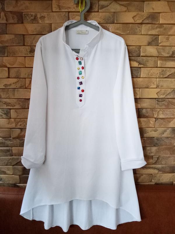 Платье-туника,белое. Р-р: 46(Ев),54(наш). Цена-220грн. Состав: п/э,эластан. Дл.изд.-79/95см. Окр.гр.-108см. Окр.бед.-124см.