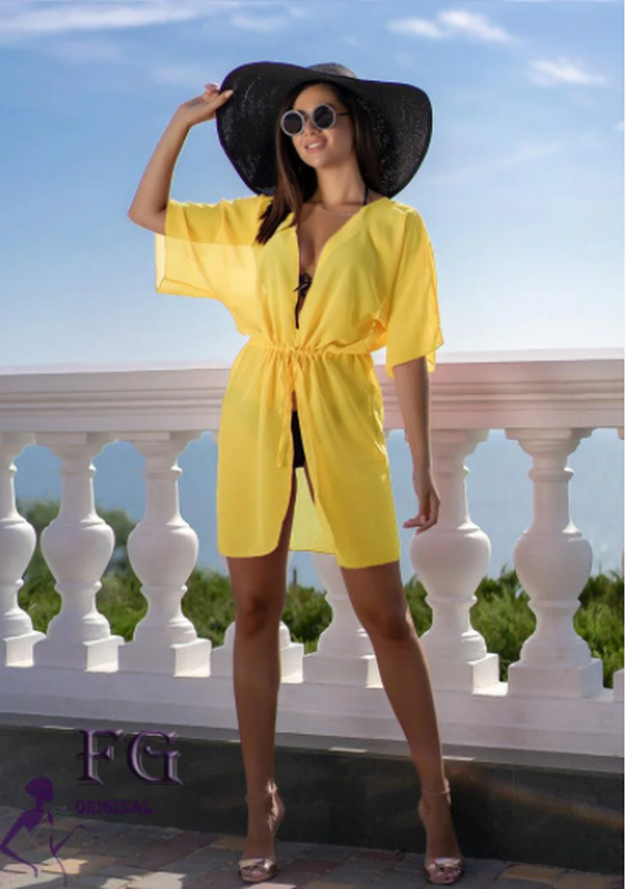 Шифонова туніка, підкреслить Ваш стиль і вигідно виділить серед відпочиваючих з V-подібним вирізом і поясом на талії, з легкого прозорого шифону Кольори: білий, корал, чорний, електрик, бордо, м'ятний, жовтий, рожевий довжина 80-90 см