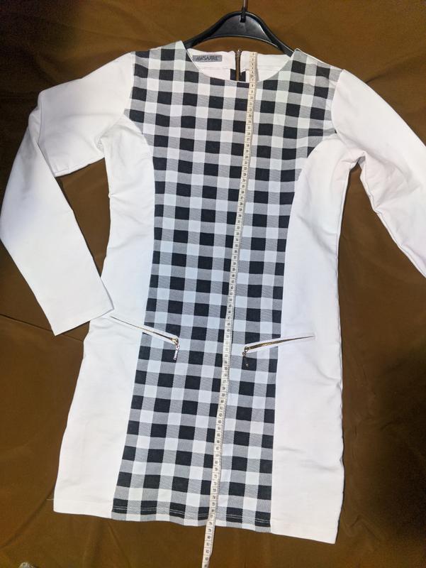 Сукня туніка в клітинку. Довжина 74см., ПОГ 45см., плечі 36см., рукав 56см., ПОталии 37см., ПОниза43см., матеріал тягнеться, красиво по фігурі. На спинці блискавка 20см. Птшите.95% бавовна 5%еластан. Пишіть)