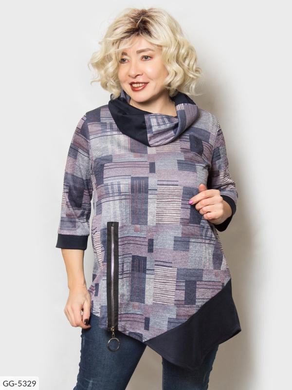 Кофта зі знімним коміром"хомут" Довжина: довжина 82 див. Тканина: полірований трикотажт Колір:сірий принт пітон, принт мармур Туніка виконаний з трикотажу меланж.