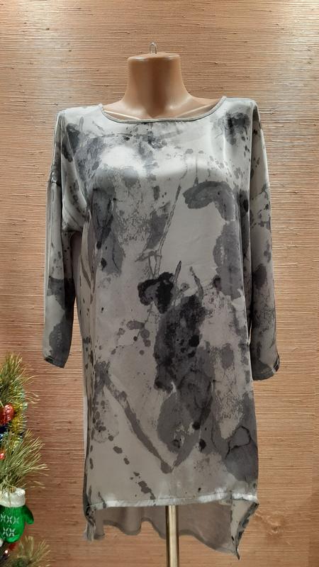 Отличная туника, по бирке S, но можно на М, есть 2 маленьких дырочки на плече-видно на последнем фото.