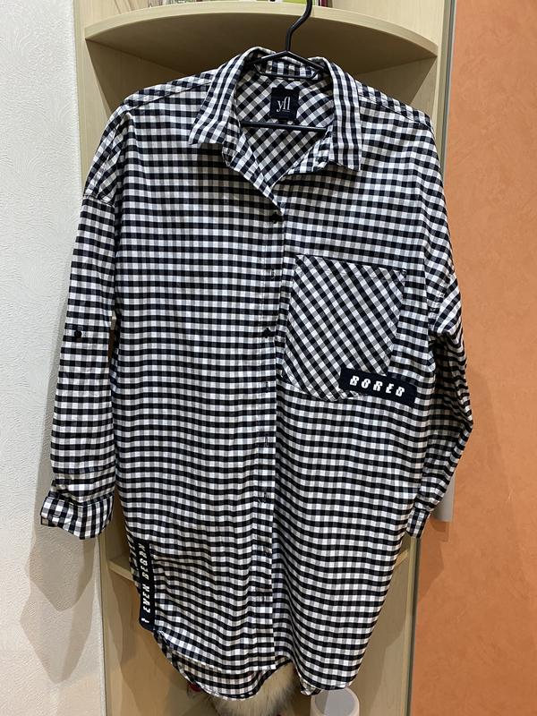 Сорочка-туніка з кишенями в клітинку. розмір: оверсайз