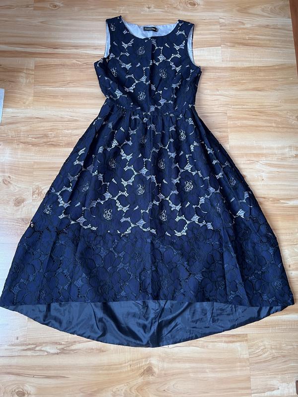 Ошатнішою плаття від Paris Pink. Гарне якісне мереживо. Перед коротший, на тілі дуже гарно виглядає. Має кишені, можна носити і під кроси. Розмір вказаний S, підійде і на не велику M. Стан нового, плаття не носилося, відсутня паперова бірка. Чорні Лакові туфлі - босоніжки теж можна придбати, розмір 5 (38). Ціна 200 грн, стан ідеальний.
