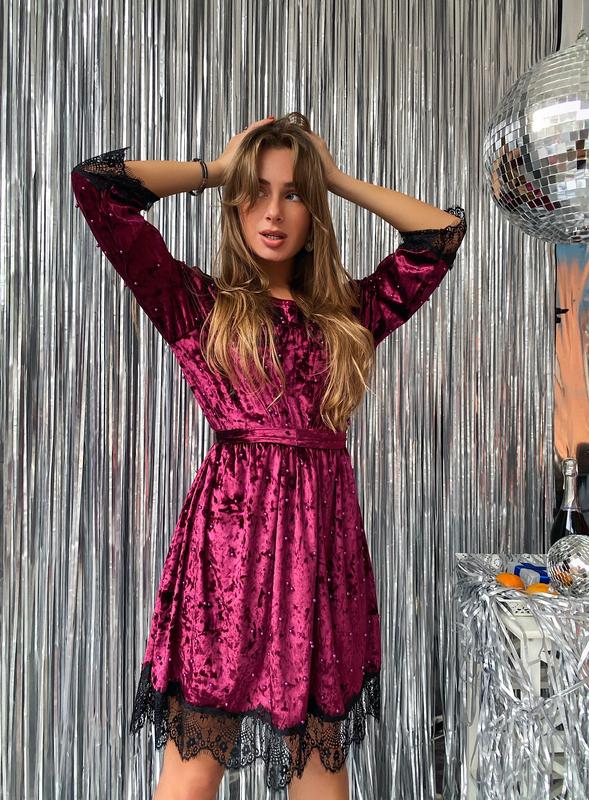 Розкішний і дуже м'який мармуровий оксамит, усипаний намистами-перлинками Вільний комфортний крій і в комплекті пояс для акценту на талії. Сукня за рахунок крою чудово сідає на будь-яку фігуру Поділ та рукави декоровані найтоншим французьким мереживом Матеріал: італійський мармуровий оксамит + французьке мереживо Розмір: onesize (XS-S-M-L)