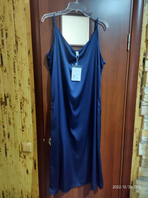 Плаття, темно сине, розмір 52-54, нове. напів обьєм НОГ 58, НОТ 60, НАС 64-65 (стегна).,довжина 120 см.