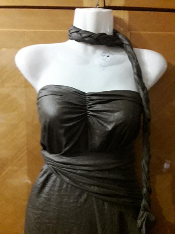 Дуже оригінальна і незвичайна сукня з паперовою біркою від відомого італійського бренда STEFANEL . Двошарова..Матеріали тонкі і легкі , шовковисті., верхній просвічує. Відкриті плечі. Бретелей немає. Цікавий декор із плетеної з матеріала коси. На бірочці розмір EU 40. Виміри робили з середини. Напівобхват грудей позаду 36 см ( тягнеться до 46 см, встановлено резинку) , грудей по переду 46 см. Напівобхват по талії 44 см, по низу 64 см. Висота по спині по середині 82 см, від пахв 84 см, по переду по середині від виріза 90 см. 100% полієстер. Камера не зовсім вірно передає колір , ближче всього 2 фото. ❗Відправляємо після повної сплати на карту Приватбанку. ❗Доставка Новою чи Укр поштою за кошти покупця. ❗Повернення та обміну немає. *8022*