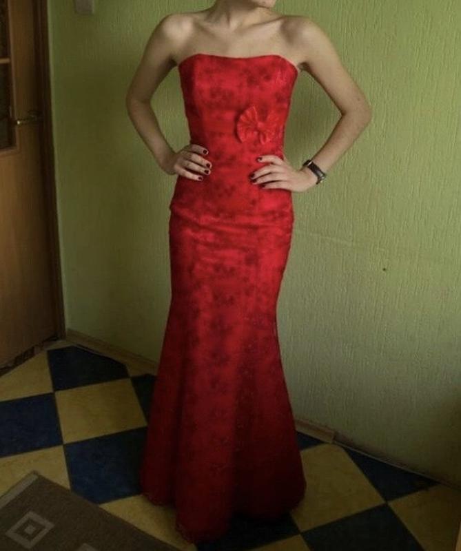 Вечернее платье, очень красиво садится по фигурке, за счет корсета можно как для xs так и для небольшой m Мой рост 169 см, я спокойно надевала каблуки Платье состоит из 4 тканей: 1. Кружево 2. Цупкий атлас 3. фатин 4. Тоненькая ткань по типу плащевки