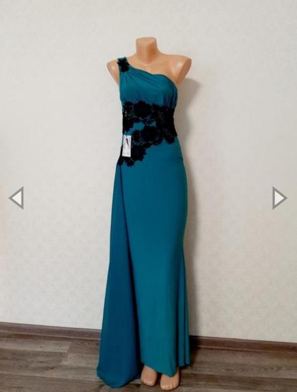 🔥Вечірня сукня Veronica Milton💎 Прикрашена чорним мереживом. Розмір 42-46 Заміри (зроблені в спокійному стані-матеріал добре тягнеться): ПОГ-37 ПОТ-31 Довжина виробу-160