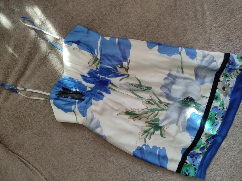 Брендова річ, в новому стані. кість вища за ціну. Воно неймовірне. Літня сукня до коліна, лямки відстібуються, 2 шари підкладки. Збоку потайна блискавка. Корсетні формуючі вставки по ліфу. Довжина 98, пог 48. Під груддю 42см, по стегнах 57.