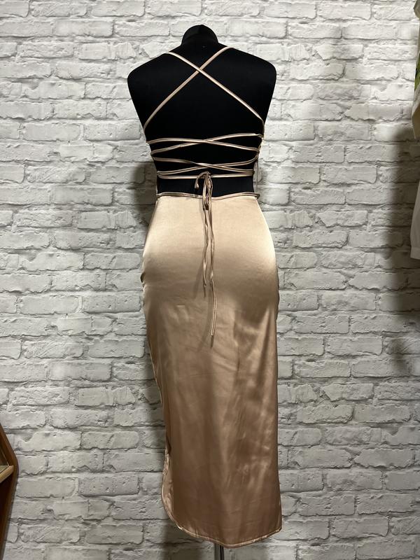 ина 390 грн 😅 в нашем инстамагазине Невесомое платье с очень красивым переплетением на спинке. Платье не просвечивается, в золотистом цвете. Подойдет на xs-s