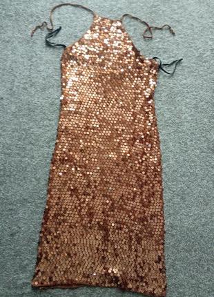 платье вязаное крючком с пайетками. Завязка на шею, голая спина. Длина от проймы 80см