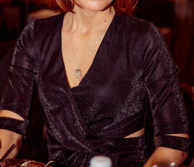Сукня з якісної тканини, з класними ацентами на рукавах і талії. Колір - чорний з світловідбиваючими частинками (це не блискітки) Розмір 36. Одягалась 1 раз Якісна підкладка, взаду замочок. є поясочок