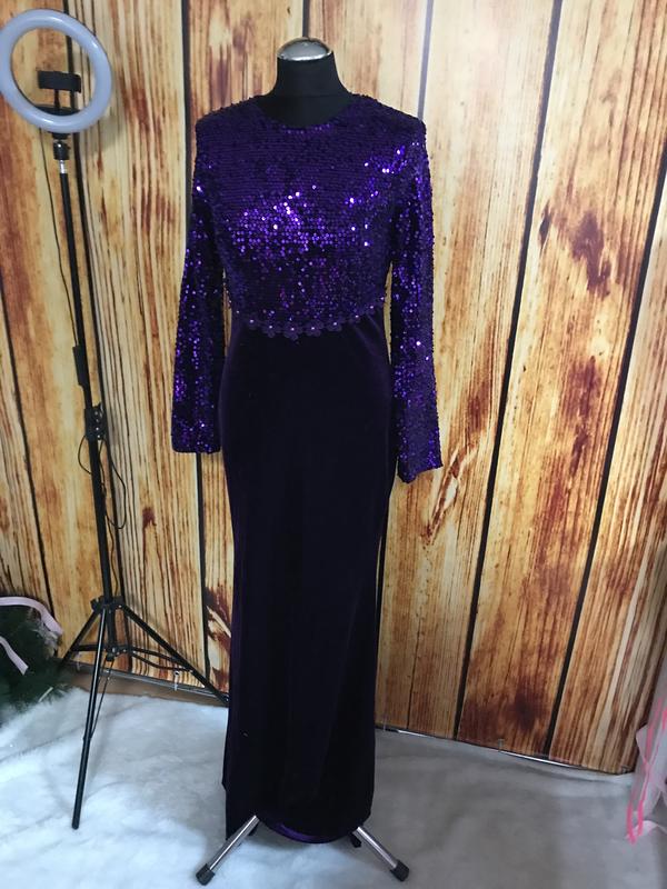Сукня в гарному стані,велюрова з паєточним верхом ,42-44 розмір ,мірки по запросу Обєм а грудях 88 і тягнкться до 90 Талія 74-78 Довжина сукні 162 Довжина рукава 58