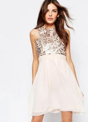 Невероятно красивое платье, размер M-L(указанный 16)длина 93см,пог 50см,пот 42см, подзади замок.