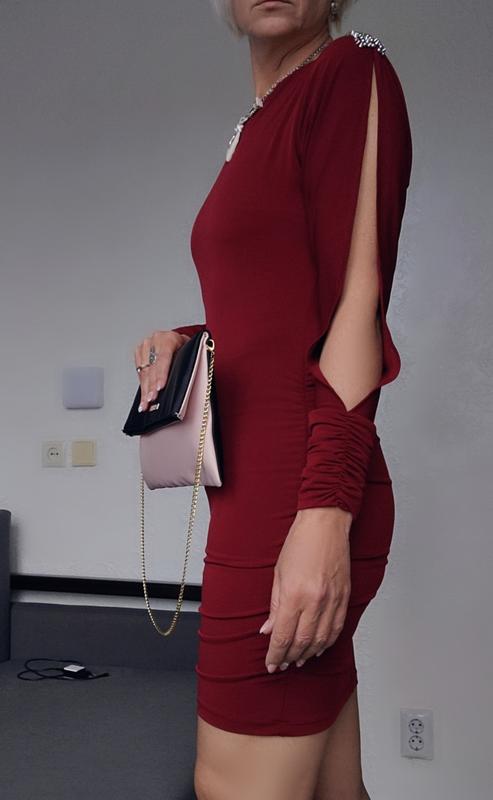 Нове бренд розмір і підтвердження все надано на фото,також ви на ціннику бачите його ціну. На мою думку маломірить але краще орієнтуватися по замірам, Тягнеться ПОГ 38-46, ПОТ 33-37 ПОБ 39-50, рукава довжина 63, довжина 96. Є запасний пакетик з прикрасами.Вживу дуже гарний насичений бордовий колір,нажаль моя камера дуже іскажає всі відтінки червоного. Дівчата мені дуже тісна так як маю більше параметри ніж вказала в описі будь ласка оцінюйте саму річ а не мою фінуру.Перед тим як придбати уважно читайте розділ обо мне