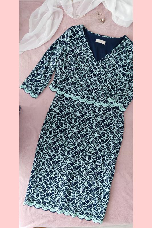 Вишукана вечірня сукня зі стрейчового гіпюру напівприталена з імітацією верхньої кофти