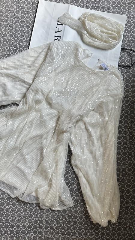 Сукня з широкими рукавами, є пояс, вся розшита паєтками♥️ ідеальний варіант на вечірній захід та на хрестини