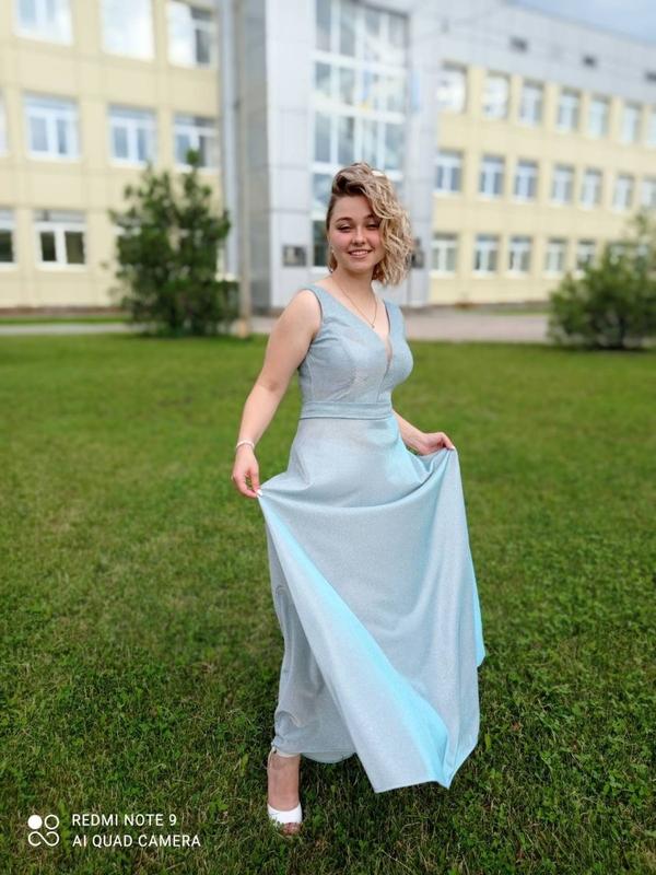 Сукня нова, одягнута один раз на випускний вечір, в розмірі М, в комплекті йде пояс.
