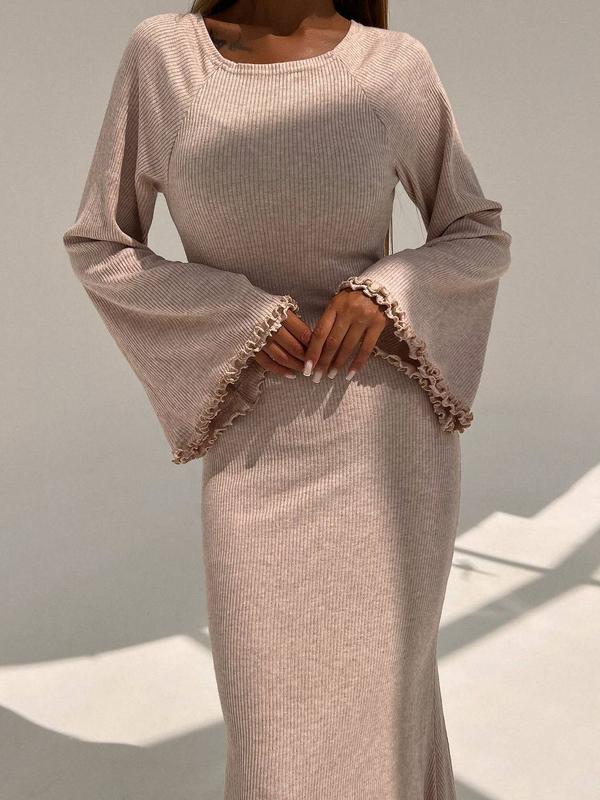 фото - реал. Трикотажное платье макси с расклешенными рукавами и открытой спиной ▫️цена: 1100 грн. ▫️тканина: утеплений трикотаж рубчик ▫️размер: S и М (L + 250 грн.) маломерят! размерная сетка: S: ОГ - 84-86 см, ОТ - 66 см, ОБ - 85-90 см M: ОГ - 86-90 см, ОТ - 70 см, ОБ - 90-94 см L: ОГ - 91-95 см, ОТ - 74 см, ОБ - 95-98 см товар под заказ. отправка в течение 2-10 рабочих дней. по Безопасной оплате данный товар недоступен