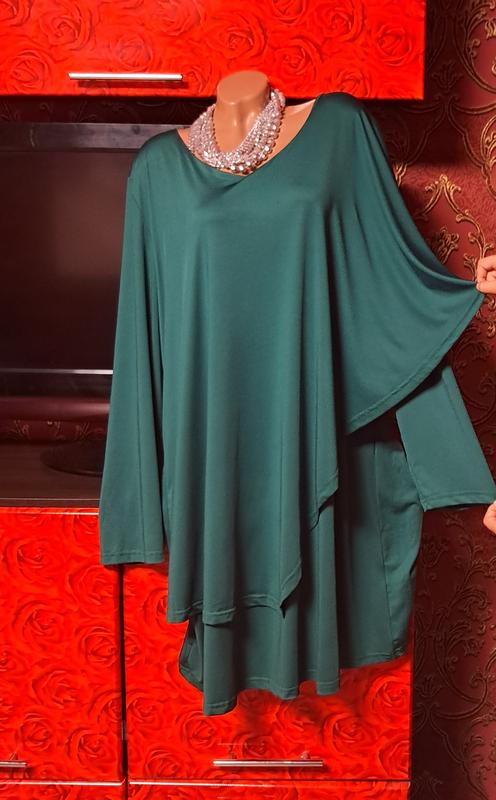 Сукня плаття гарного зеленого кольору.фото не передає краси.тканина мікро масло.зверху пелеринка'скриває животик.довжина 98.груди 63'бедра 67.тканина гарно тягнеться.