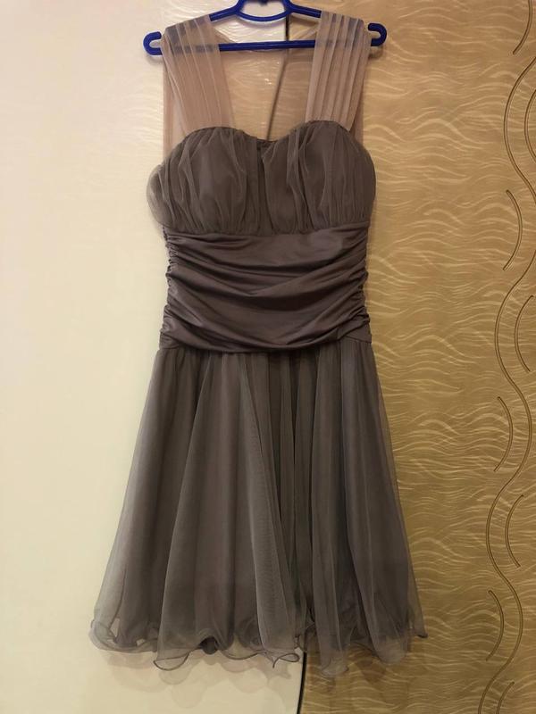 Коричневе/ кавове нарядне плаття Одягалось один раз Розмір S Стрейчове Довжина плеча - 7 см Талія - 30 см (тянеться) Довжина - 85 см Низ вільний, неприталений На тілі виглядає як корсет