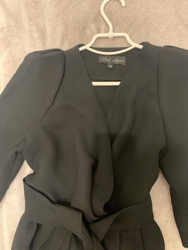 Плаття класичне, чорне, застібається на 2 ґудзики і широкий пояс. Довжина по спинці 111 см.талія 80 см