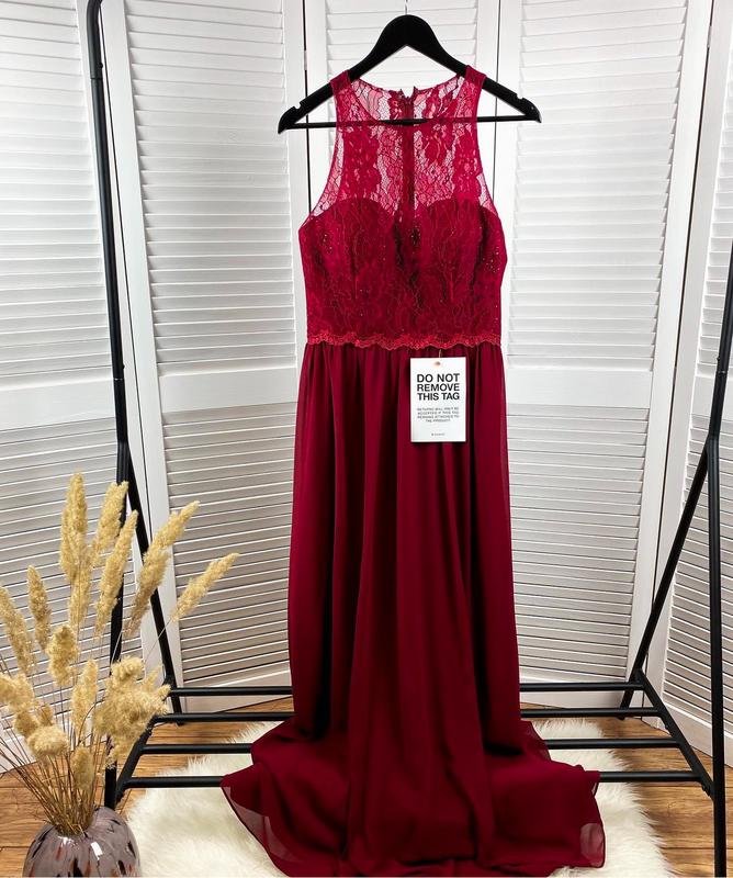 Вечірня довга сукня кольору вишні Mascara ,вшитий ліф ,кружево на сітці (дуже якісне ) ➡️Size Uk14 (Xl) пог 41/пот 38/довд. 155 🏷Цена 1290 (на сайі4700)