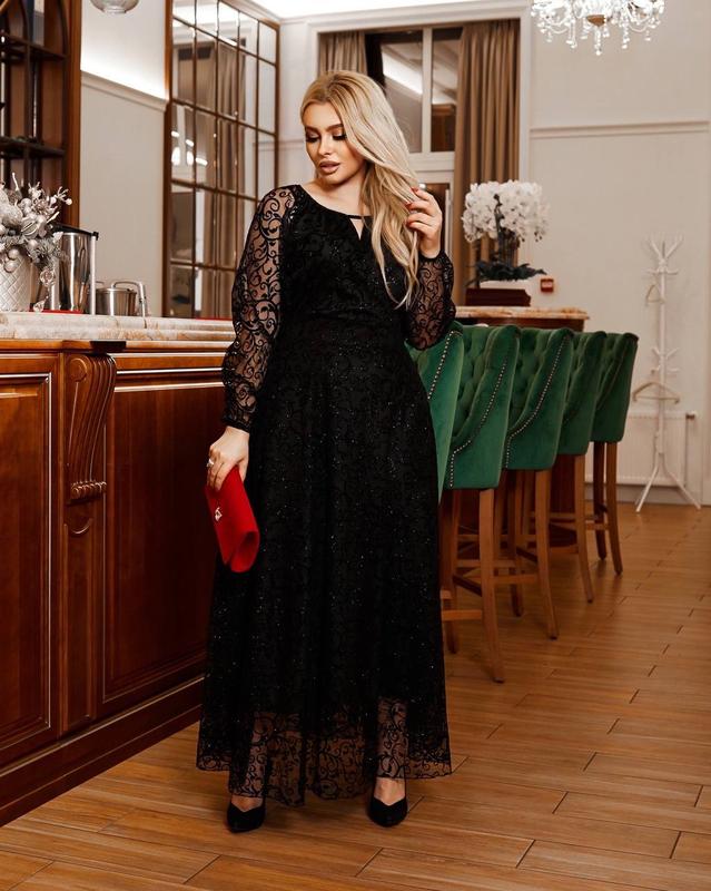 Сукня Мод 4000 Тканина:сітка флок +підклад Розмір:,50-52,54-56,58-60 Колір: чорний + чорний, чорний + беж 50-52 ОГ - 110см, довжина рукава - 60 см, довжина виробу - 143 см, ОТ-100 54-56 ОГ - 120 см, довжина рукава - 60 см, довжина виробу - 144 см, ОТ-108 58-60 ОГ - 130 см, довжина рукава - 60см, довжина виробу - 145см, ОТ-116