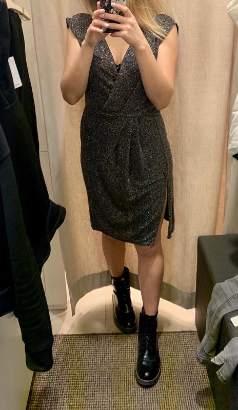 Ефектна сукня, яка мерехтить навіть без світла. Тканина легенька, підійде в будь-який сезон і свято. Має розріз на ніжці. Розмір S (на фото мій зріст 160 см, тож можна носити як і нижче зростом, так і вище ;) Дефектів немає, оскільки носилась 1 раз, стан як з магазину.