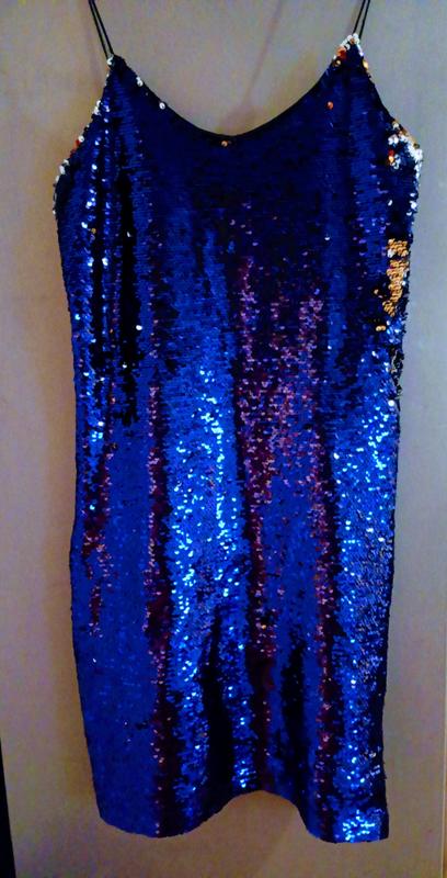 Плаття дуже яскраве.Колір синій.Розмір S.Довжина 90 см.