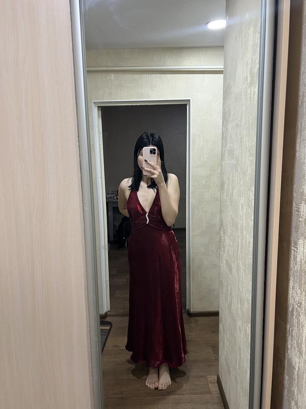 Сукня бордового кольору, розмір S, ззаду є пояс який можна завʼязати або використати як накидку