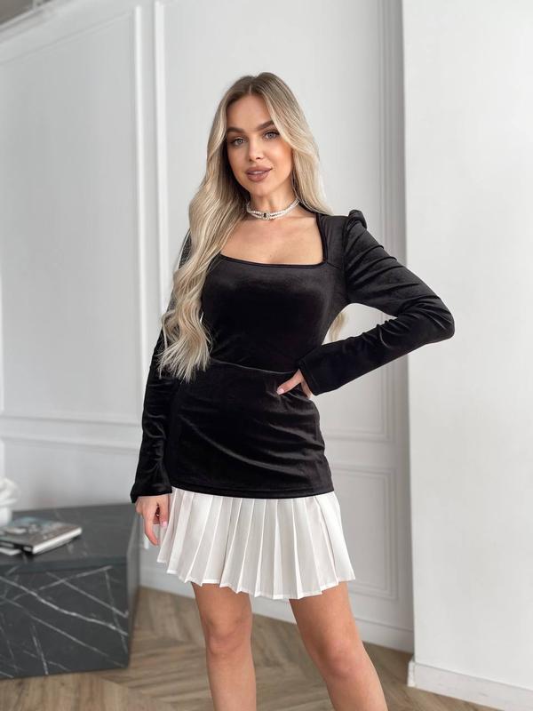 Арт 1004 ▪️Матеріал: бархат ▪️Розміри XS, S, M ▪️Колір: чорний ▪️Особливості: перлини на спинці, плісирована спідниця Розмірна сітка: XS: груди 82-86 см, талія 60-66 см, стегна 84-90 см, довжина 77 см S: груди 86-90 см, талія 66-70 см, стегна 88-94 см, довжина 78 см M: груди 90-96 см, талія70-75 см, стегна 92-98 см, довжина 80 см