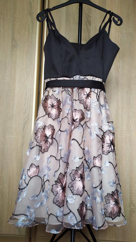 Довжина по боковому шву 80 см.Напівобхват грудей 40см, напівобхват талії 37 см.Довжина шлейок регулюється.Є маленька дірка на низу але її не видно бо входить у складку