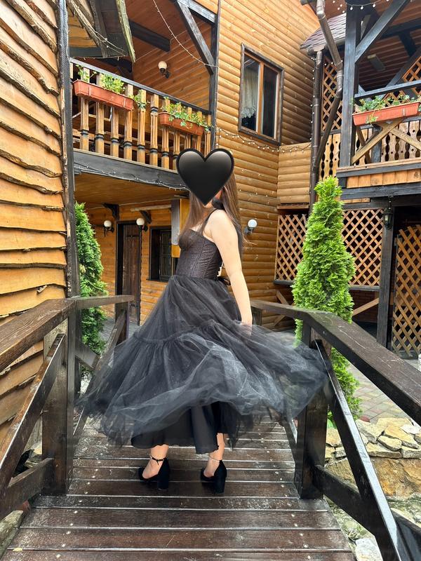 ОГ:94 ОТ:77( можна регулювати бо корсет) Матеріал: юбка та шлейки з фатину. Вся в блискітках