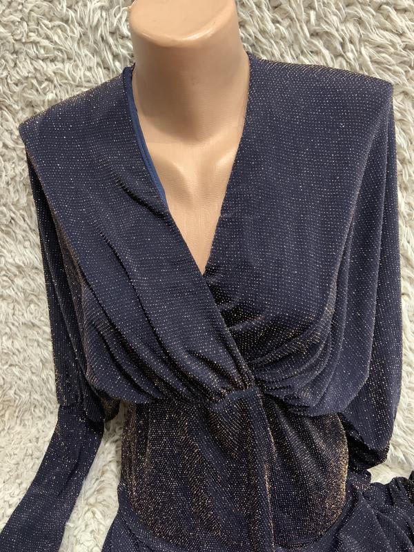 Оригінальна , дуже гарна сукня з блиском. Тканина трикотажна. Гарний пошив. Довгий розріз з лівої сторони. Довжина 155 см Тканина тянется.