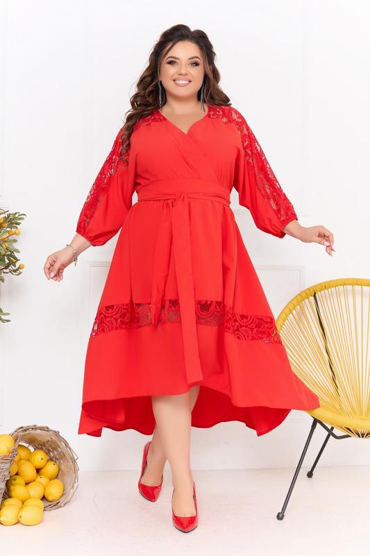 Вечернее платье праздничное длинное миди с поясом больших размеров однотонное с гипюром 48...