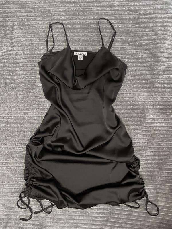 Чорна атласна вечірня сукня з завʼязками в гарному стані